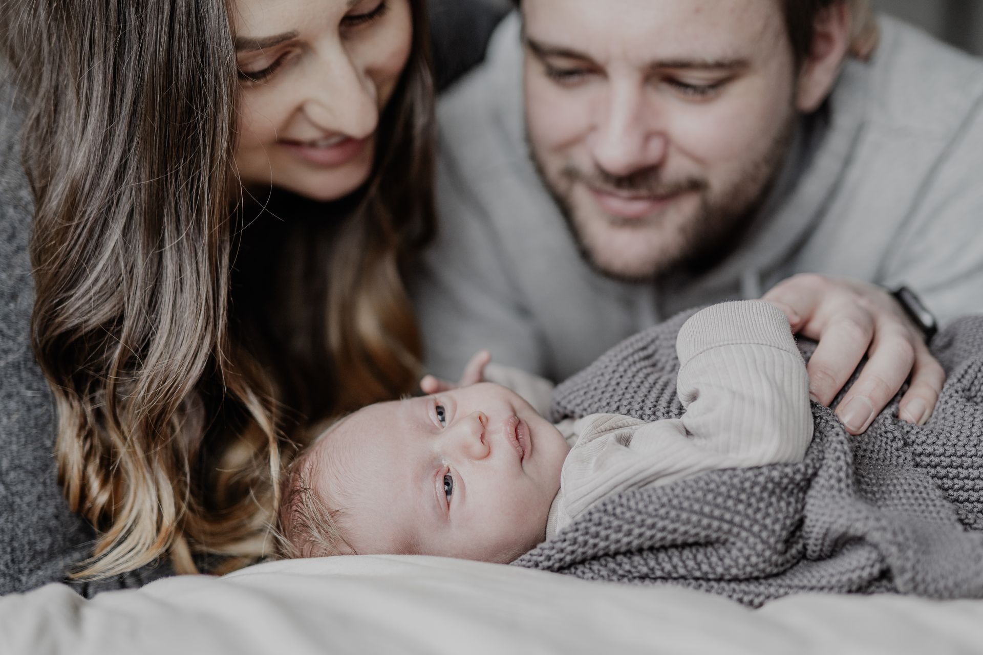 Neugeborene und ihre neuen Eltern.